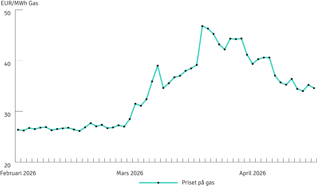 I Tyskland steg det fasta elpriset för 2027 snabbt och kraftigt vid krigets start, eftersom de har stort behov av gas till elproduktionen. De nordiska elpriserna har också stigit, men inte i lika snabb takt och till lika hög nivå. Prisökningen för SE3 år 2027 är cirka 10 öre/kWh.
